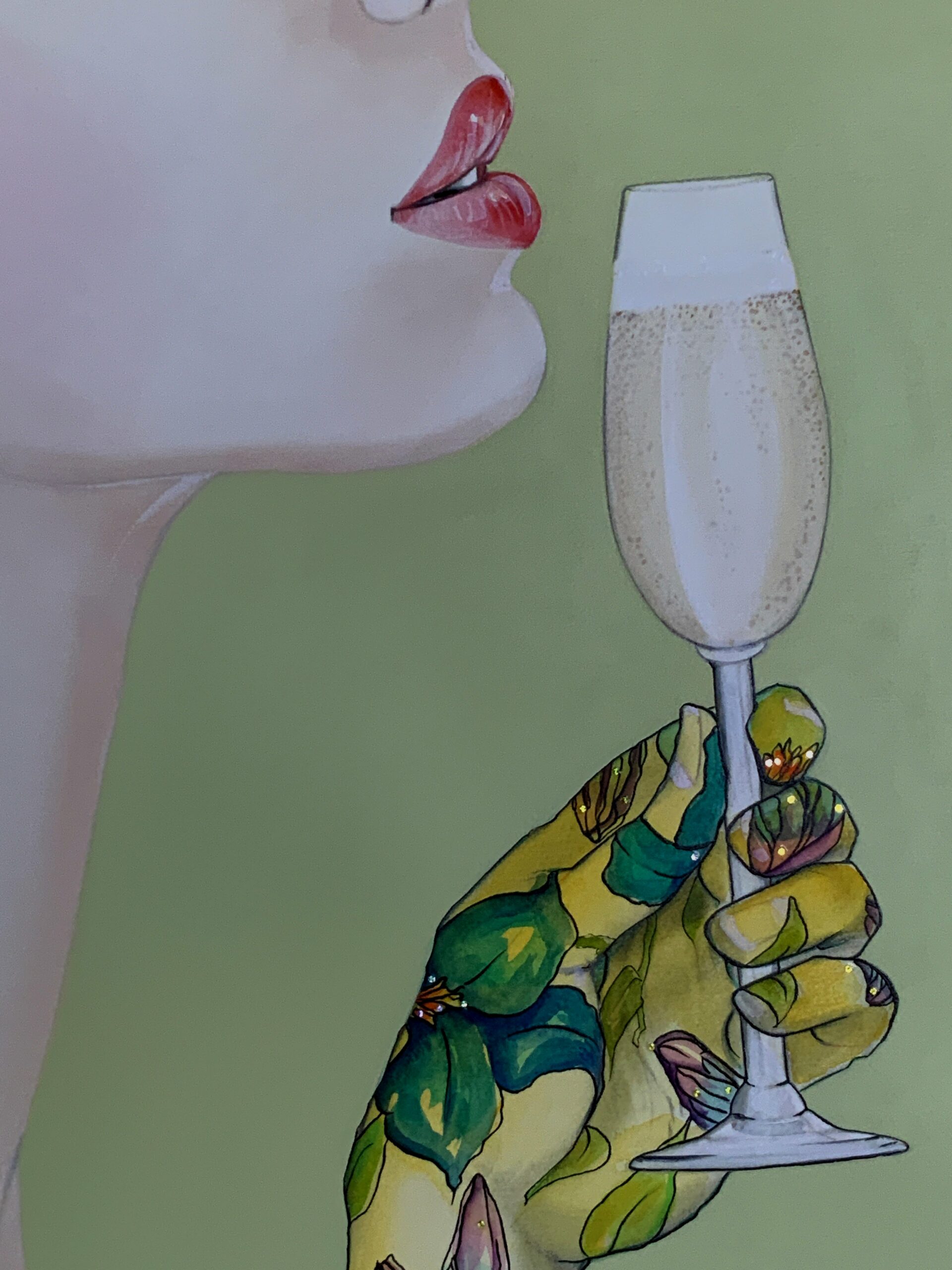 Peinture originale sur papier Arches, paillettes au format 80x60cm.